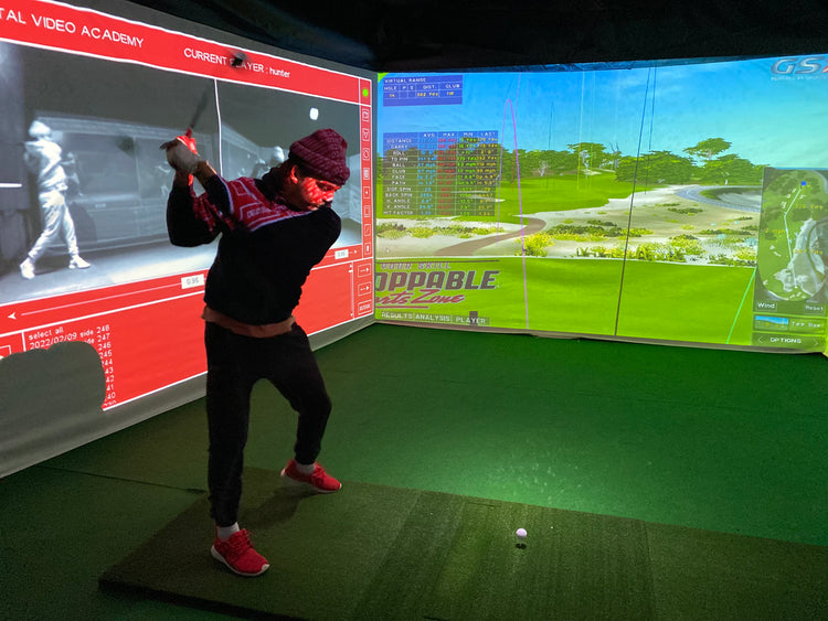Experience realistic indoor golf at Unstoppable Sports Zone.